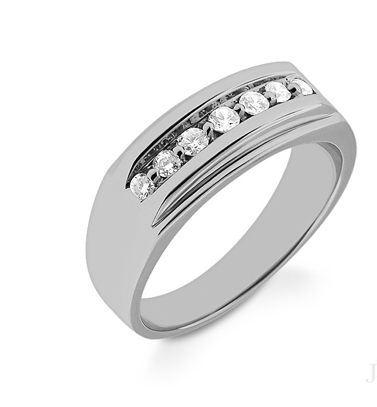 Grooved Comfort-Fit Flat One Line Stone Band