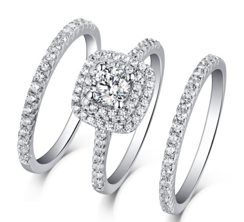 One Round Shape Square Solitaire Engagement Two plaine Rings Mounting